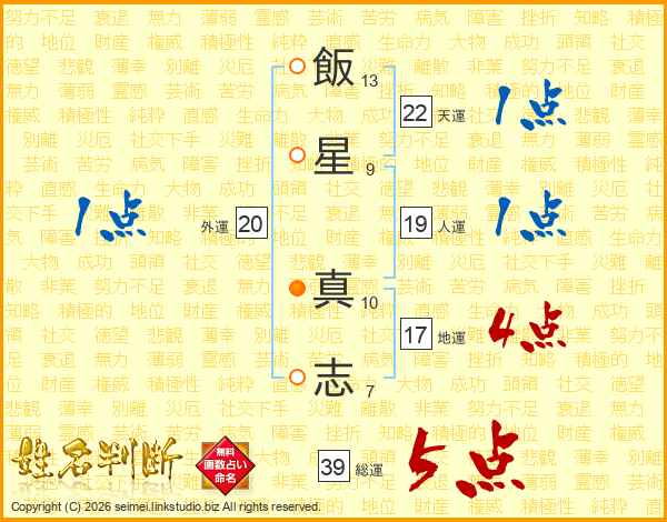 飯星真志さんの総運は39画の5点!