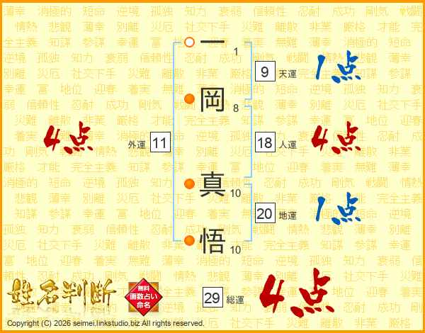 一岡真悟さんの人運は18画の4点!