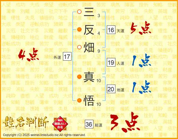 三(3画)反(4画)畑(9画) 真(10画)悟(10画)