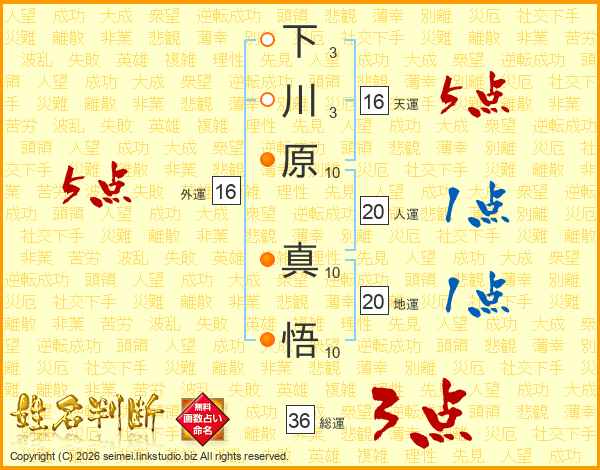 下川原真悟さんの天運は16画の5点!