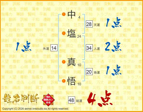 中塩真悟さんの総運は48画の4点!