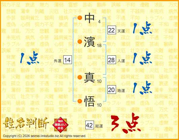 中(4画)濱(18画) 真(10画)悟(10画)