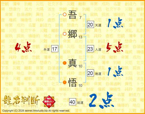 吾(7画)郷(13画) 真(10画)悟(10画)