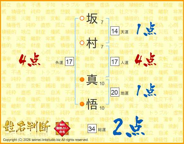 坂村真悟さんの天運は14画の1点!