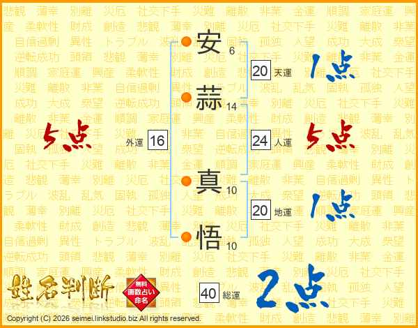 安蒜真悟さんの総運は40画の2点!
