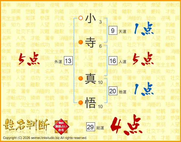 小寺真悟さんの総運は29画の4点!