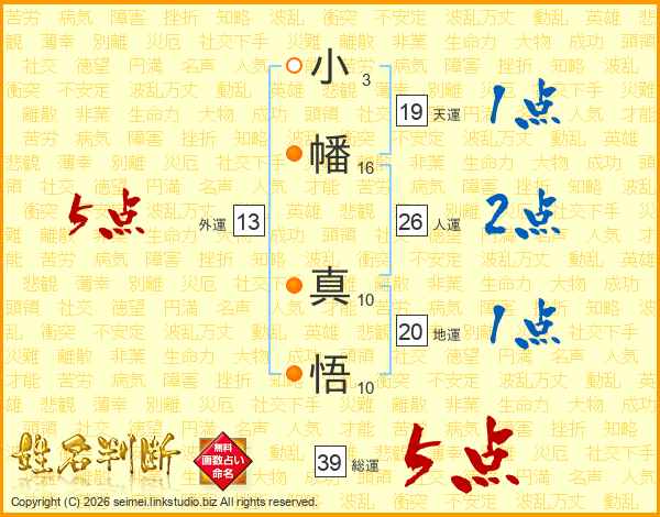 小(3画)幡(16画) 真(10画)悟(10画)