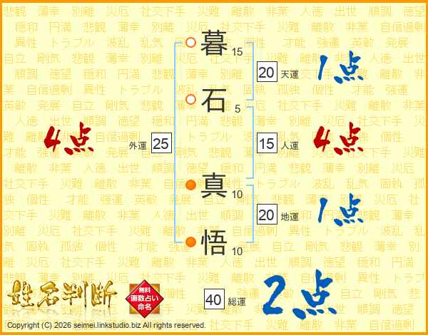 暮(15画)石(5画) 真(10画)悟(10画)