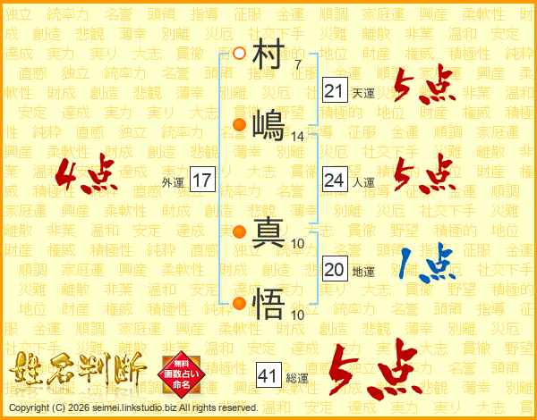 村嶋真悟さんの天運は21画の5点!