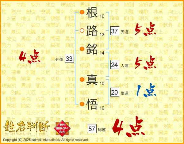 根路銘真悟さんの天運は37画の5点!