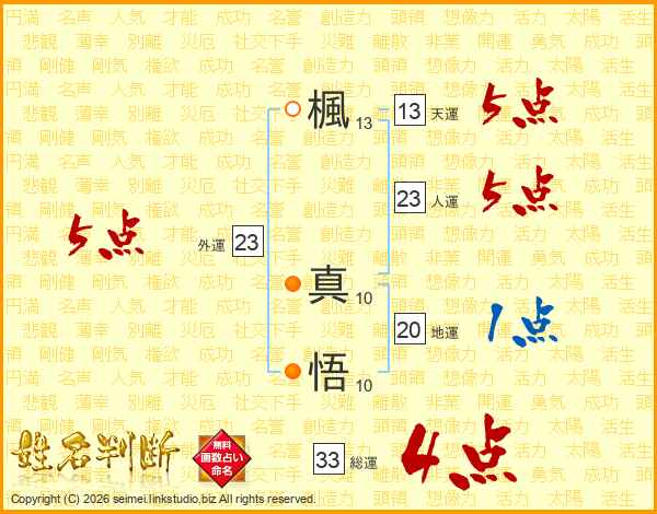 楓真悟さんの総運は33画の4点!