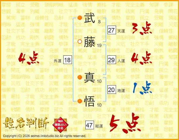 武(8画)藤(19画) 真(10画)悟(10画)