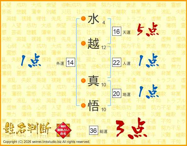 水越真悟さんの人運は22画の1点!
