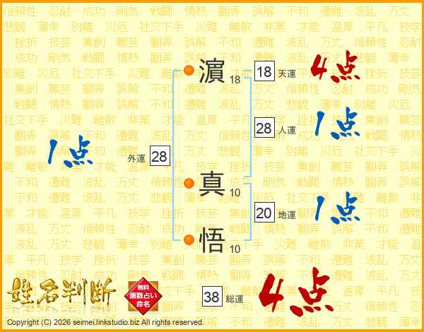 濵真悟さんの総運は38画の4点!
