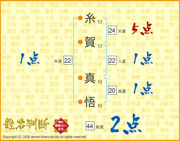 糸(12画)賀(12画) 真(10画)悟(10画)