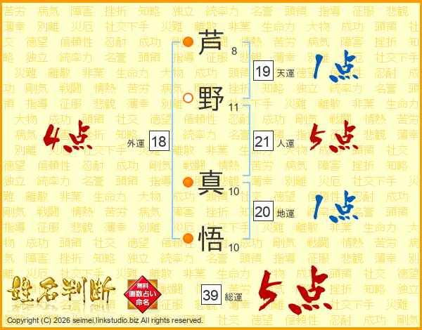 芦野真悟さんの総運は39画の5点!