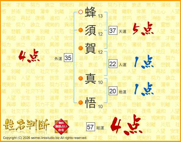 蜂須賀真悟さんの総運は57画の4点!
