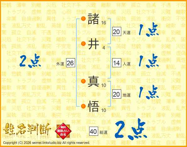 諸(16画)井(4画) 真(10画)悟(10画)