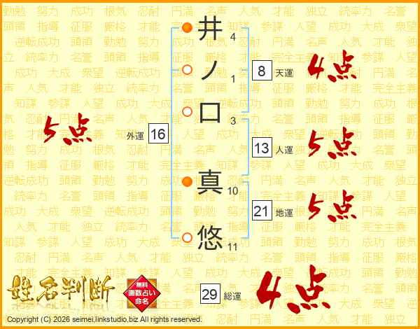 井ノ口真悠さんの総運は29画の4点!