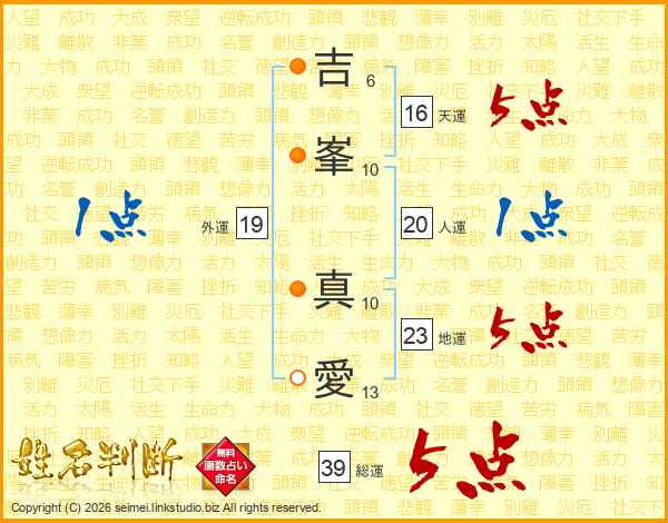 吉峯真愛さんの総運は39画の5点!