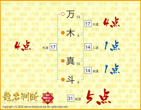 万木真斗さんの総運は31画の5点!