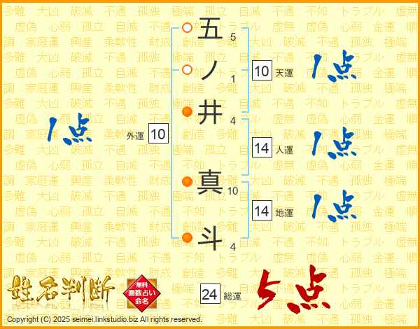 五ノ井真斗さんの総運は24画の5点!
