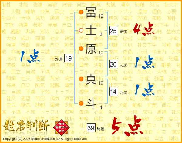冨士原真斗さんの総運は39画の5点!
