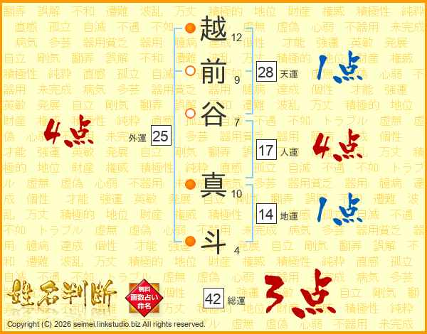 越前谷真斗さんの総運は42画の3点!