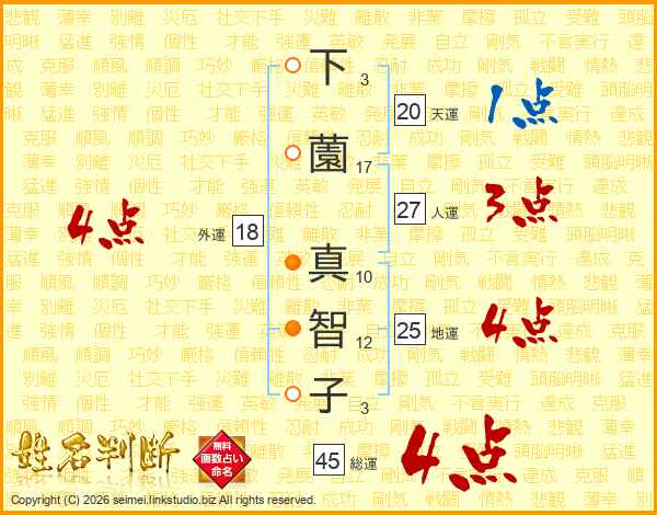 下薗真智子さんの総運は45画の4点!