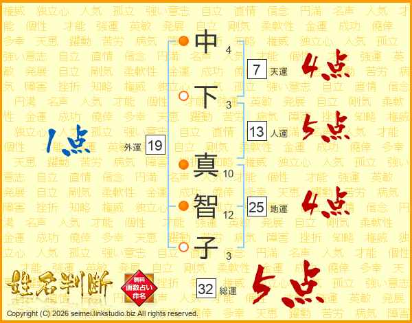 中下真智子さんの総運は32画の5点!