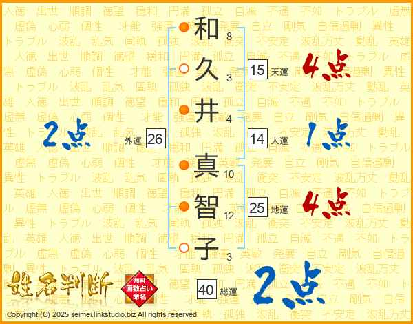 和(8画)久(3画)井(4画) 真(10画)智(12画)子(3画)