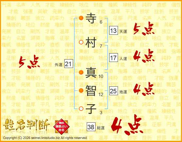 寺村真智子さんの総運は38画の4点!