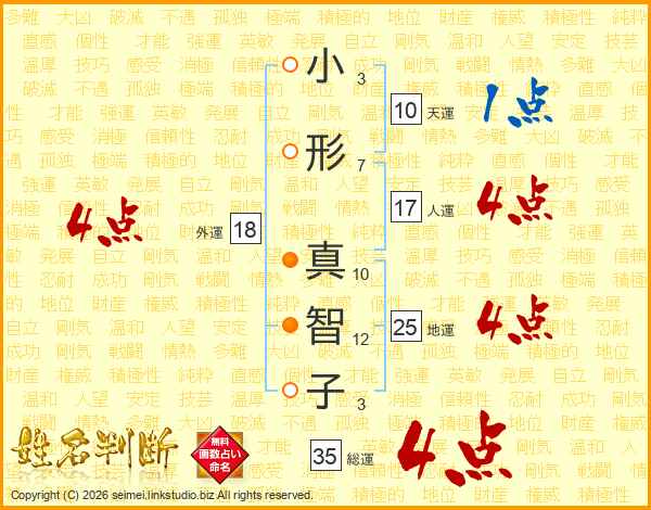 小形真智子さんの地運は25画の4点!