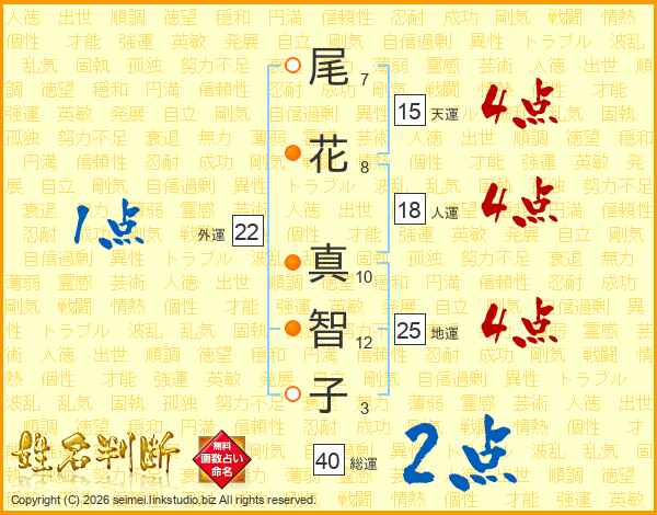 尾花真智子さんの総運は40画の2点!