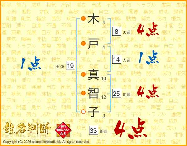 木戸真智子さんの総運は33画の4点!