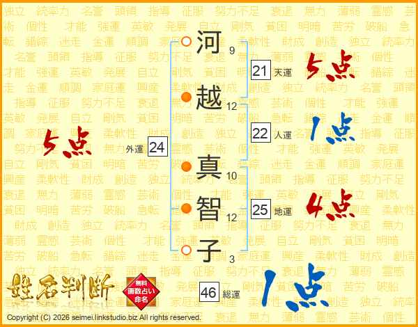 河越真智子さんの総運は46画の1点!