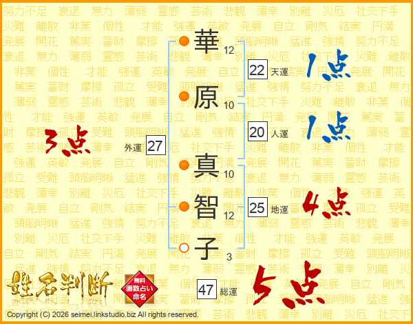 華原真智子さんの総運は47画の5点!