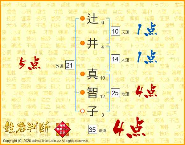 辻井真智子さんの外運は21画の5点!