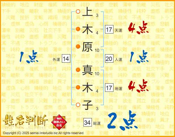 上(3画)木(4画)原(10画) 真(10画)木(4画)子(3画)