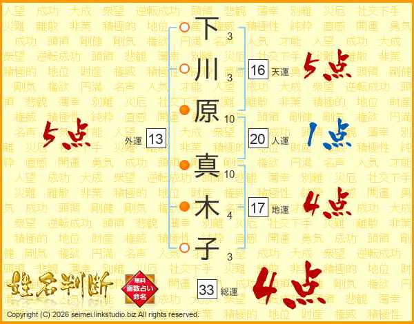 下川原真木子さんの総運は33画の4点!
