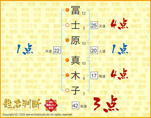 冨(12画)士(3画)原(10画) 真(10画)木(4画)子(3画)