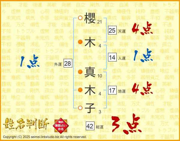 櫻(21画)木(4画) 真(10画)木(4画)子(3画)