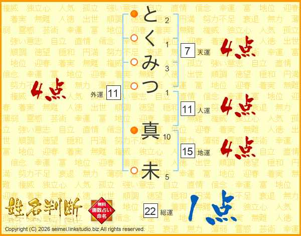 とくみつ真未さんの総運は22画の1点!