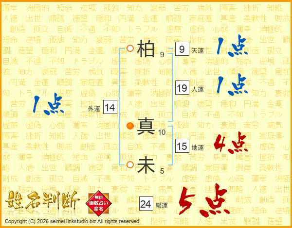 柏真未さんの総運は24画の5点!