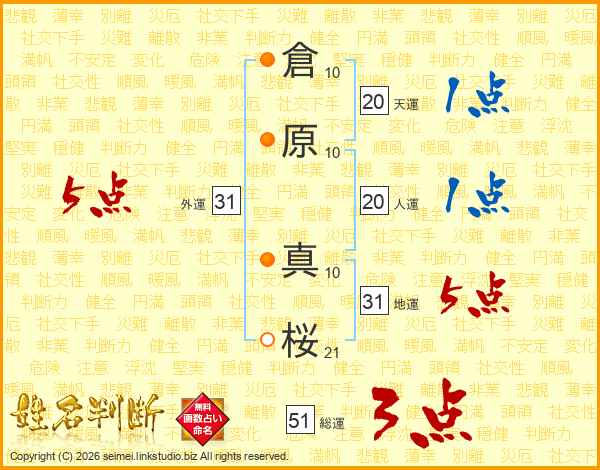倉原真桜さんの外運は31画の5点!
