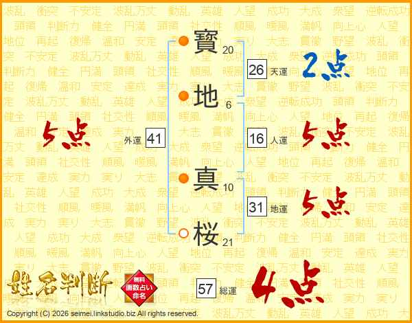 寳地真桜さんの天運は26画の2点!