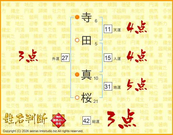 寺田真桜さんの天運は11画の4点!