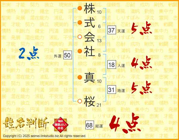 株(10画)式(6画)会(13画)社(8画) 真(10画)桜(21画)