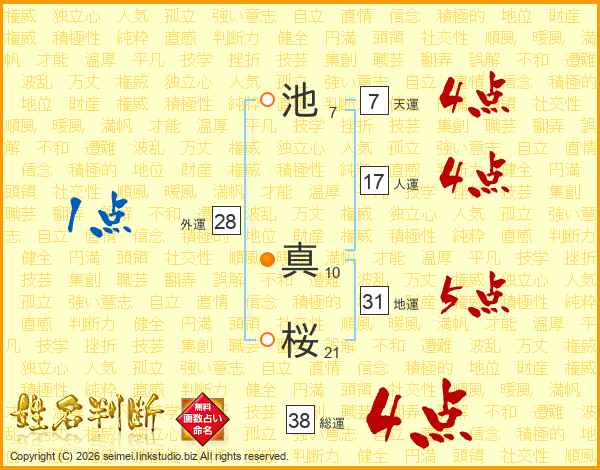 池真桜さんの総運は38画の4点!