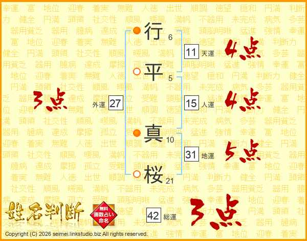 行(6画)平(5画) 真(10画)桜(21画)